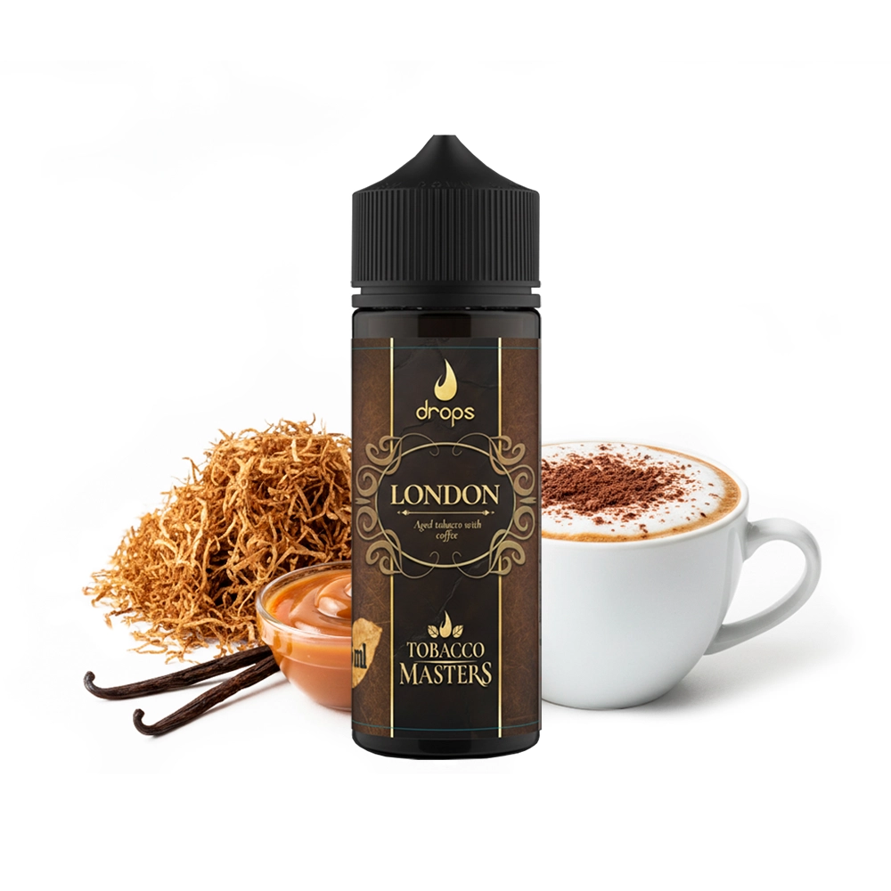 Drops Tobacco Masters London Longfill 12ml, es una sofisticada arquitectura tabaquil sobre base RY4. La receta incorpora componentes aromáticos selectos que aportan una nota floral sutil, elevando el aroma de cappuccino hacia un acabado seco, distinguido y de dulzor contenido.