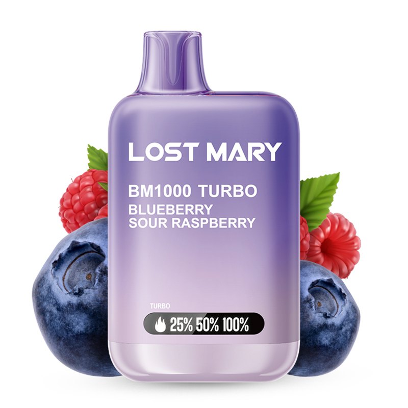 Lost Mary BM1000 Blueberry Sour Raspberry está fabricado por ElfBar y ofrece un delicioso sabor a frutos rojos, en los que destacan las frambuesas y los arándanos.